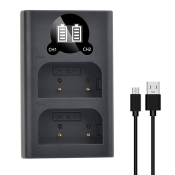 Chargeur USB 2 ports BLX-1 BLX1 LED pour OM-1 du système Olympus OM, OM-1 Mark II, OM-3, appareil photo HLD-10